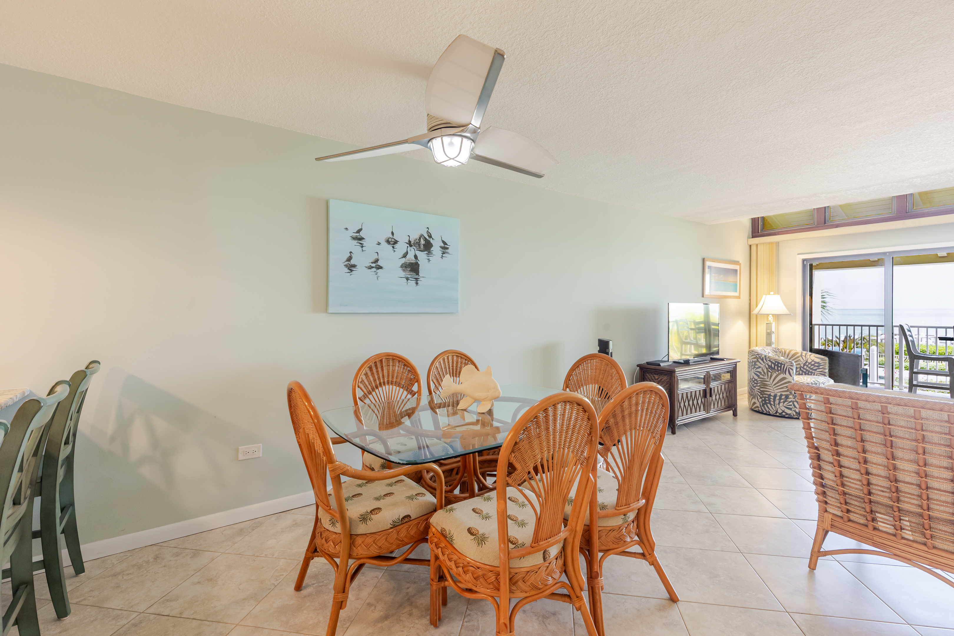 The main floor living area includes the kitchen, laundry room, dining and living area as well as a queen bedroom with bath accessible from both the common area hallway and bedroom. The large flat screen TV and various seating arrangements leave room for all to enjoy. Off to the side of the dining room is a small desk area that gets great natural light, perfect for any work-from-home needs. Step out the slider doors to a beautiful balcony overlooking the Atlantic Ocean, pool and hot tub. Whether you want to wake up and watch the boats going out for the day or sip a cocktail and watch the sun go down, the views are unbeatable!