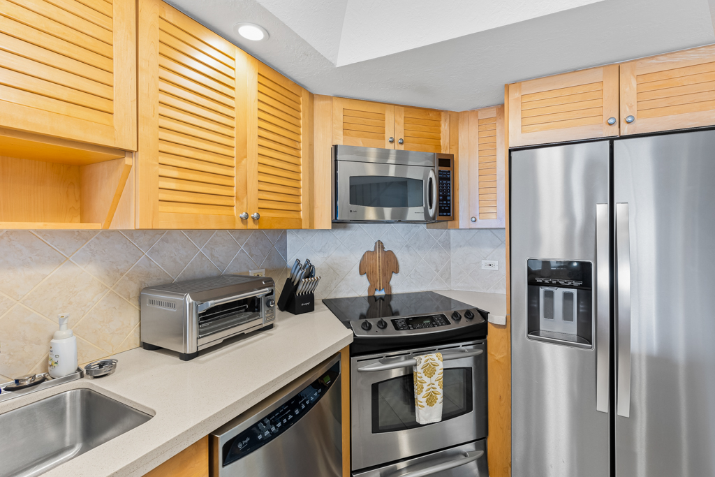 All of our units have well-equipped kitchens but there are two gas-grilling areas on property for your fresh catch or favorite meal! Our Tiki Grill is located near the sports court and our two Oceanfront Grills are located nearest South Point, all accompanied by picnic tables and trash cans.