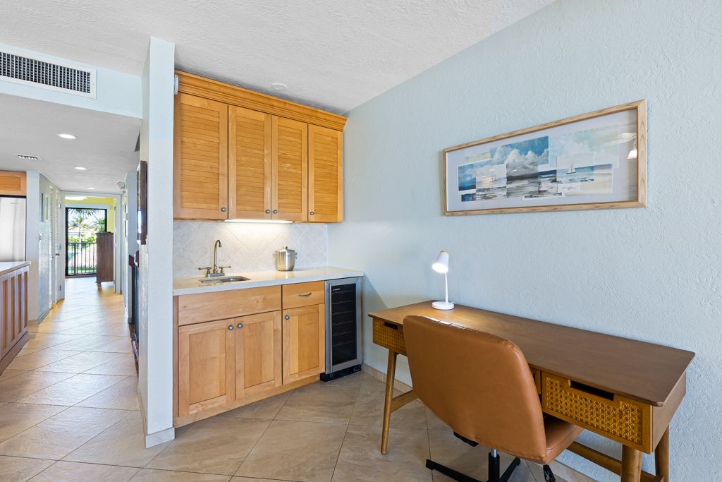 We have several different waterfront areas, including a pocket beach with sand-access into the pristine blue waters that make the Florida Keys so special. We also have a small coral path down into the water for wading, various lounge chairs in sandy waterfront areas, and a spacious seawall where you can catch both the sunrise and sunset. Please note we do not have additional beach chairs or umbrellas for off-site, but are happy to refer you to some of our local vacation supply partners.