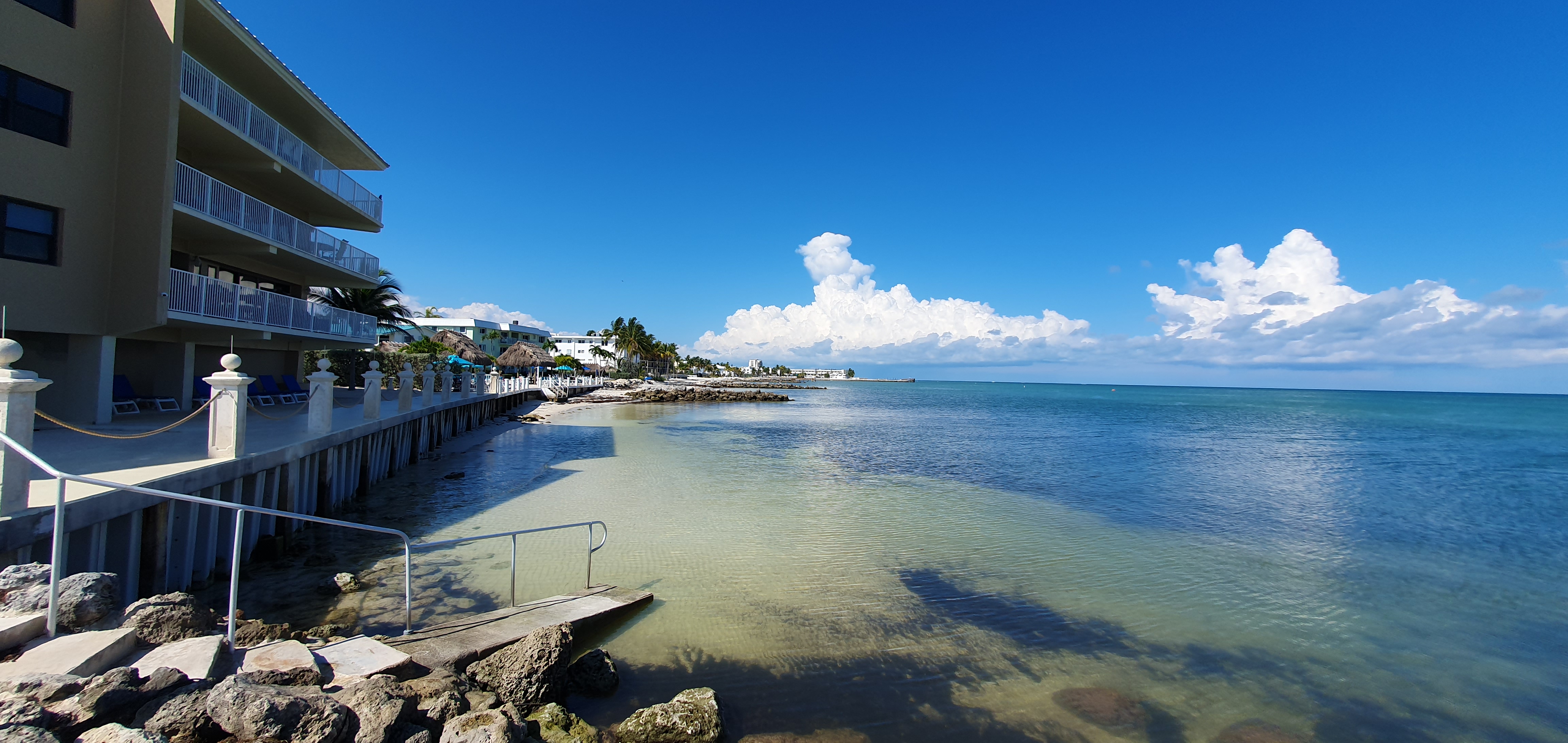 We have several different waterfront areas, including a pocket beach with sand-access into the pristine blue waters that make the Florida Keys so special. We also have a small coral path down into the water for wading, various lounge chairs in sandy waterfront areas, and a spacious seawall where you can catch both the sunrise and sunset. Please note we do not have additional beach chairs or umbrellas for off-site, but are happy to refer you to some of our local vacation supply partners.
