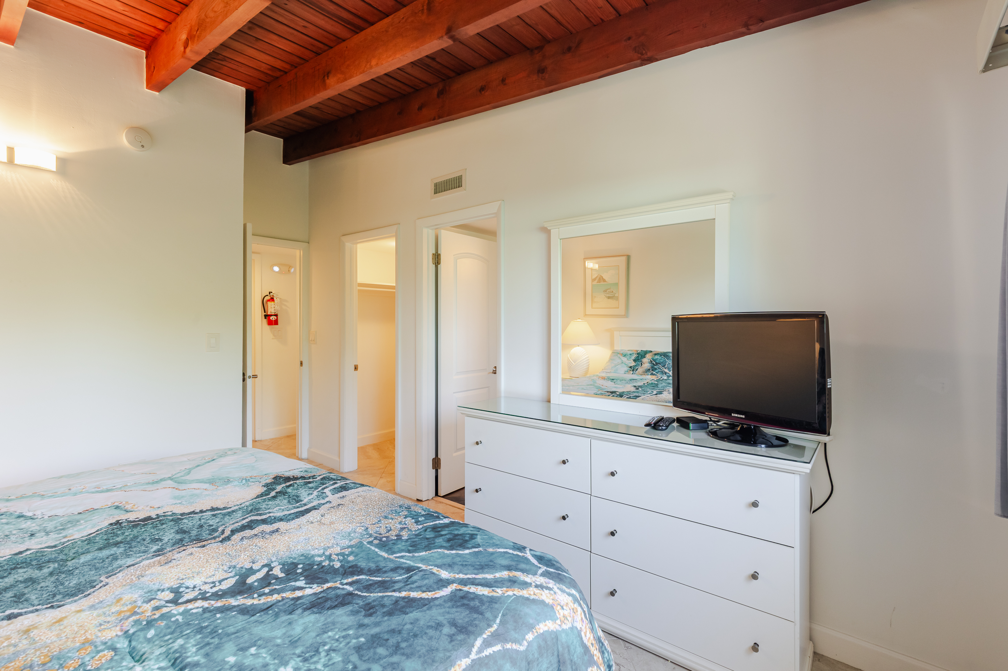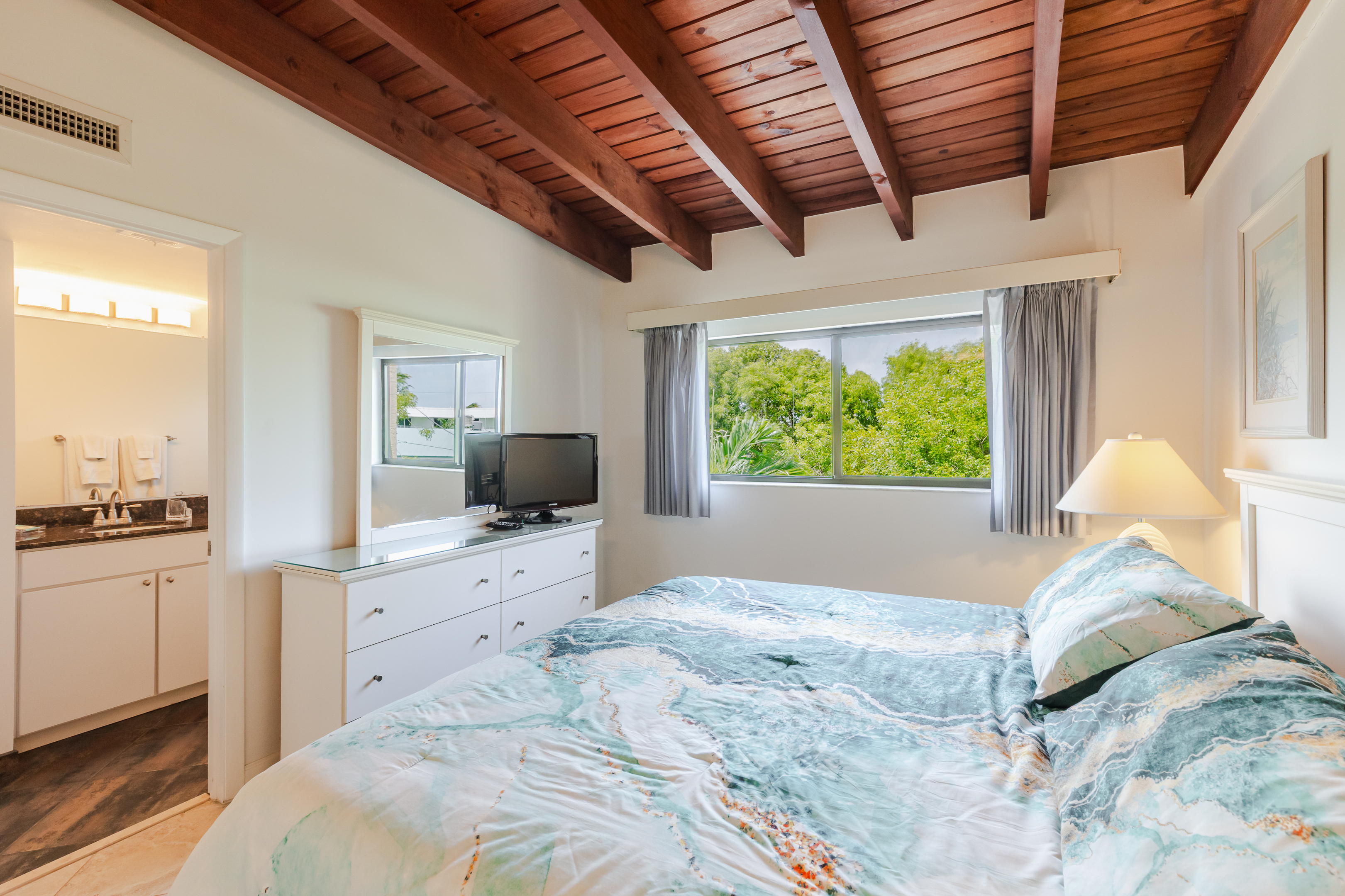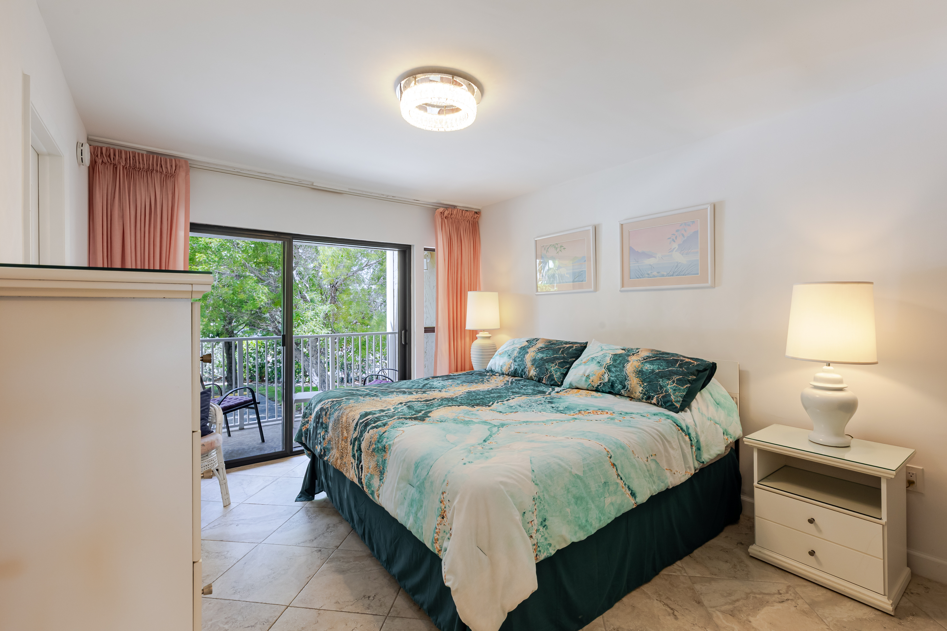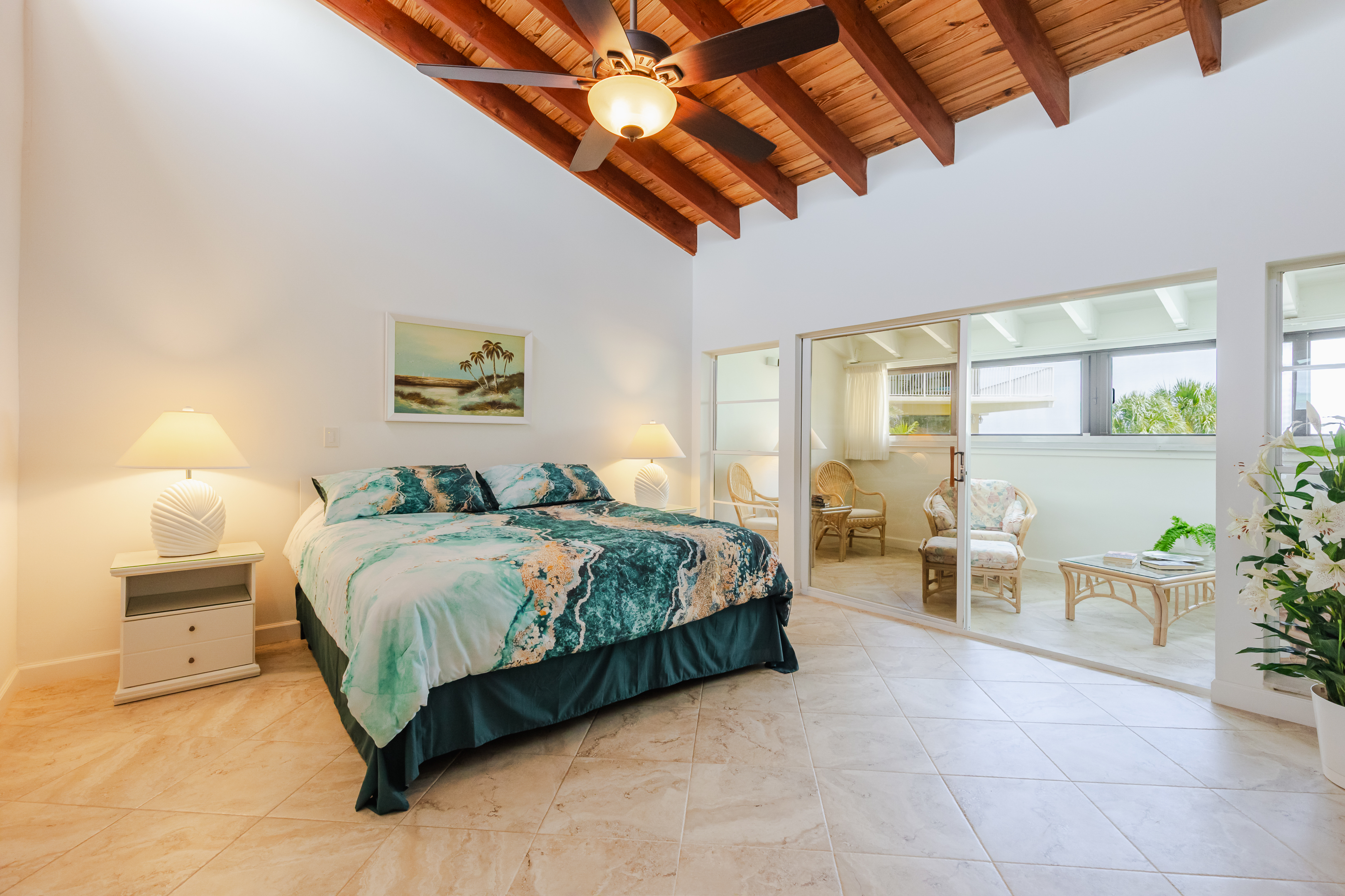 Master Bedroom: Includes a flat screen TV and sliding glass doors leading to a second-floor balcony with an unparalleled ocean view.
